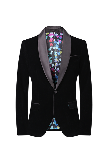 Velvet Shall Lapel Blazer - Black